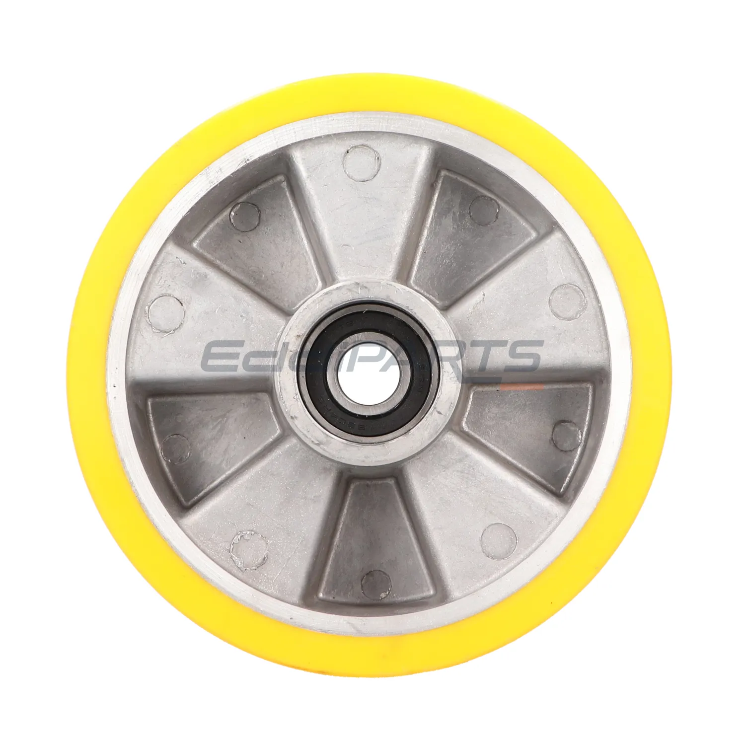 Koło do wózka paletowego wykonane z aluminiowo-poliuretanowego materiału to trwałe i solidne rozwiązanie dla wózków paletowych używanych w intensywnych warunkach pracy. Korpus z wytrzymałego aluminium zapewnia stabilność oraz odporność na uszkodzenia, natomiast poliuretanowa powłoka gwarantuje cichą i płynną jazdę, a także doskonałą przyczepność na różnych nawierzchniach. Dzięki temu koło jest nie tylko wytrzymałe, ale i delikatne dla powierzchni, co pozwala chronić podłogi przed zarysowaniami